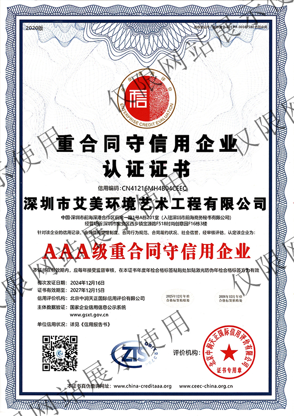 AAA级重合同守信用企业证书