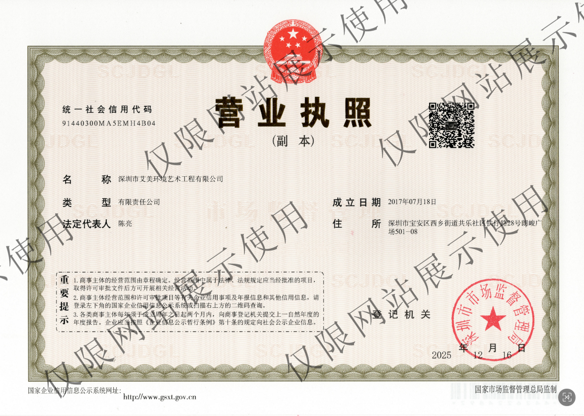深圳市艾美环境艺术工程有限公司营业执照